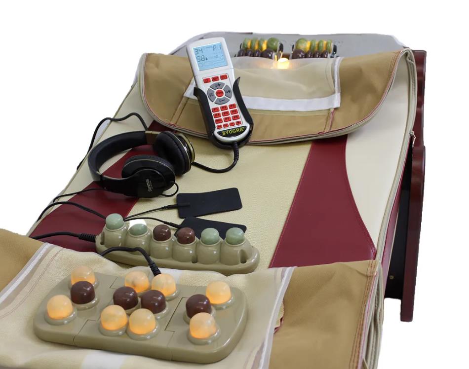 Die SYOGRA Jademassageliege ist eine Gesundheitsvorsorge und wurde zur Entspannung und Regeneration entwickelt. So können Rückenprobleme, müde schwere Beine und Schmerzen gelindert und vorgebeugt werden. Die integrierte Infrarot-Tiefenwärme reicht vom Nacken über Rücken bis zu den Beinen.